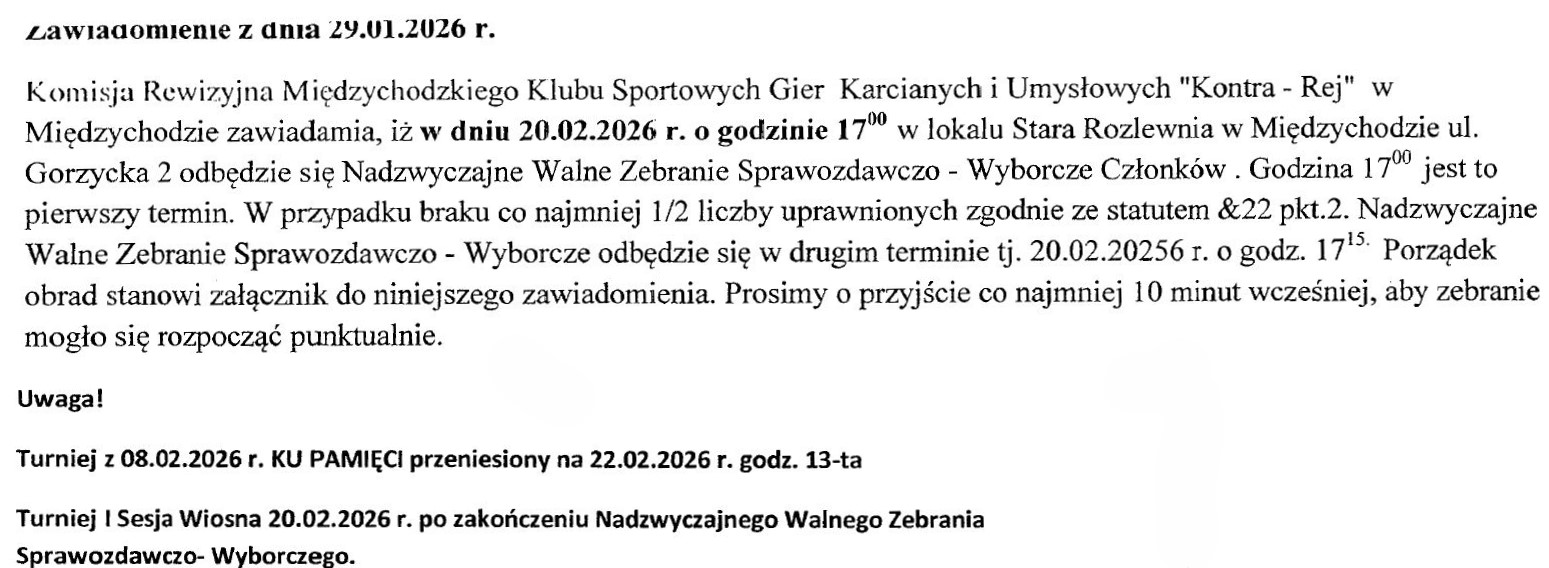 Nadzwyczajnego Walnego Zebrania MKSGK i U Kontra - Rej w Międzychodzie.